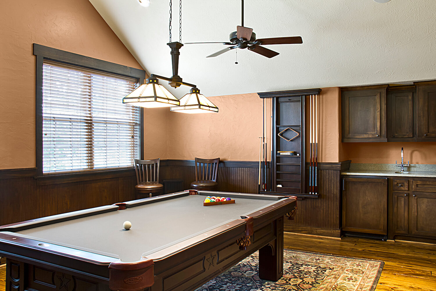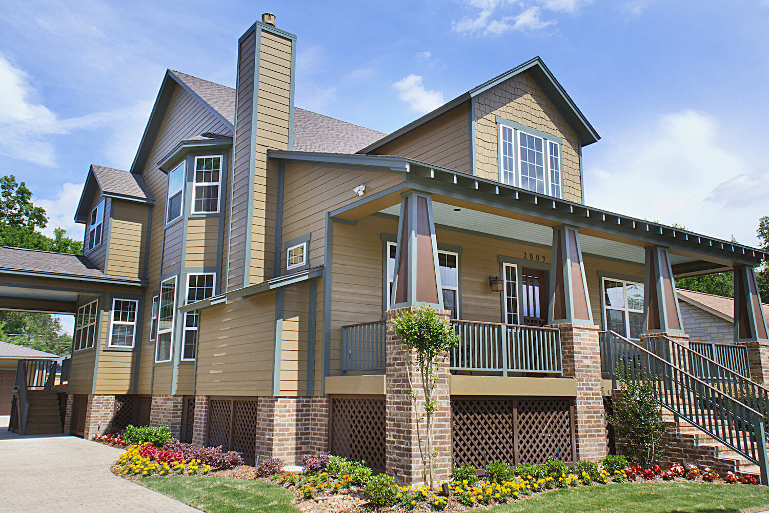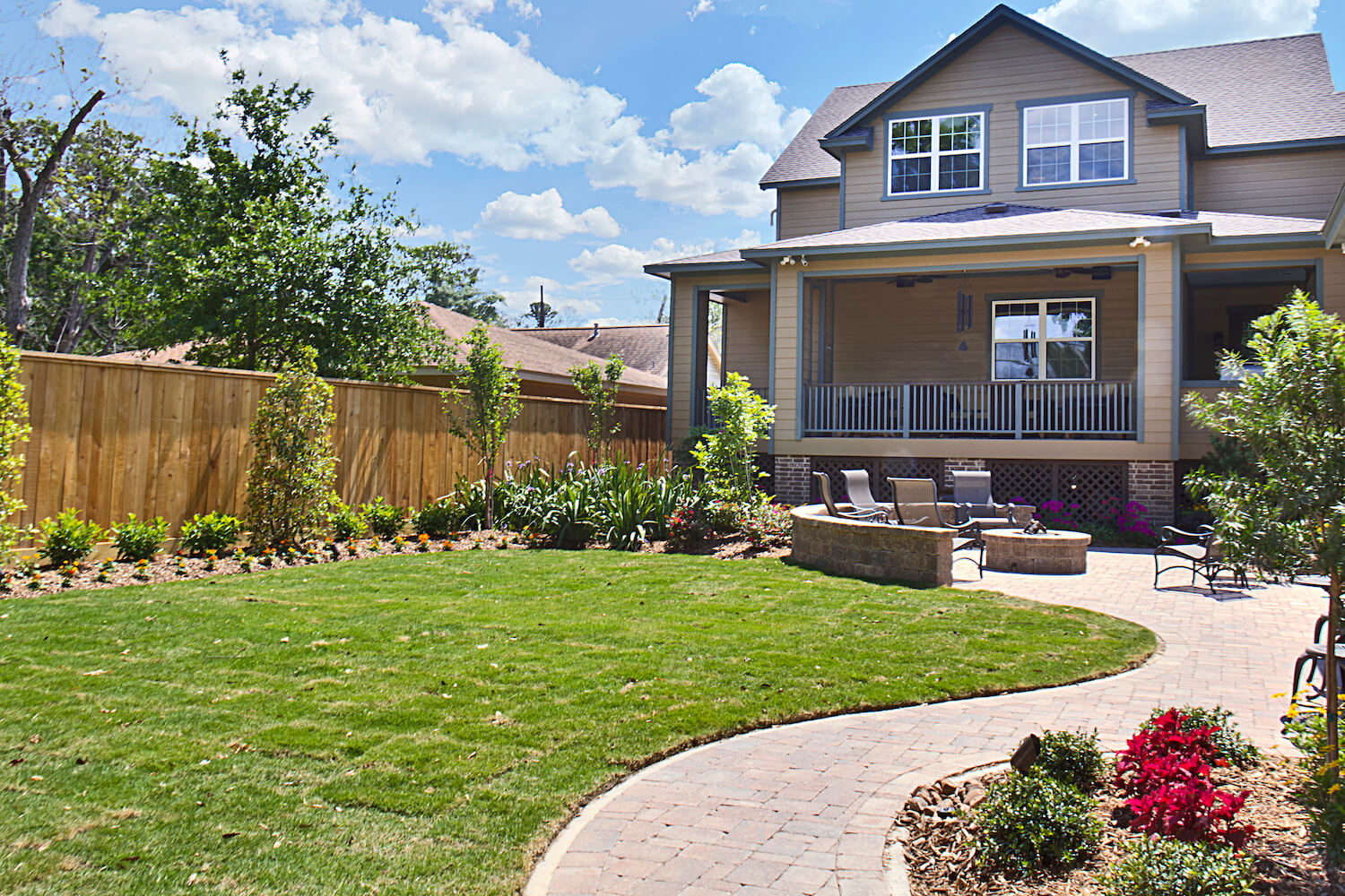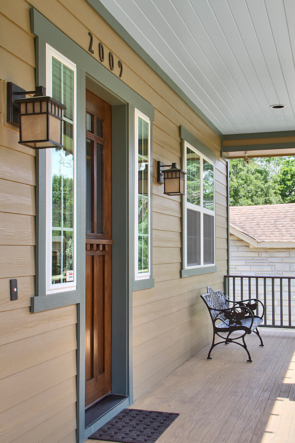 This home in The Heights shows off classic Craftsman design. We built it with brick bases, wood trim, and tapered columns that add strong curb appeal. Inside, the chef’s kitchen has a commercial-grade stove and built-in appliances, and cozy tile fireplaces bring extra charm. The primary bath includes a soaking tub and a frameless glass shower. We even added a hidden door that leads to a private study for a fun touch.