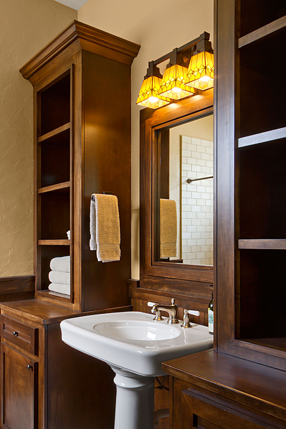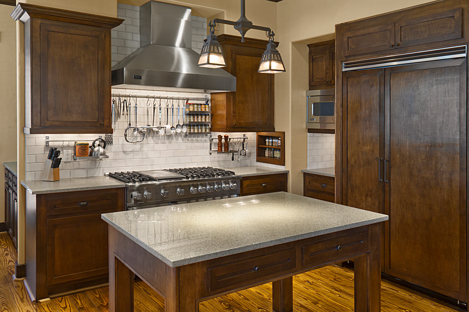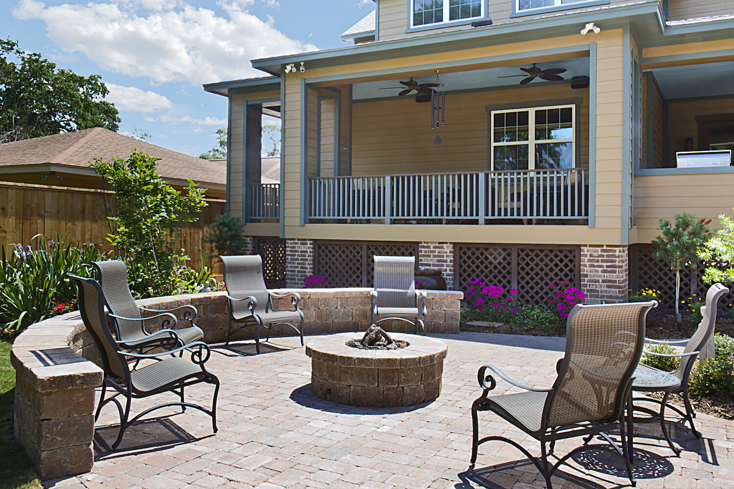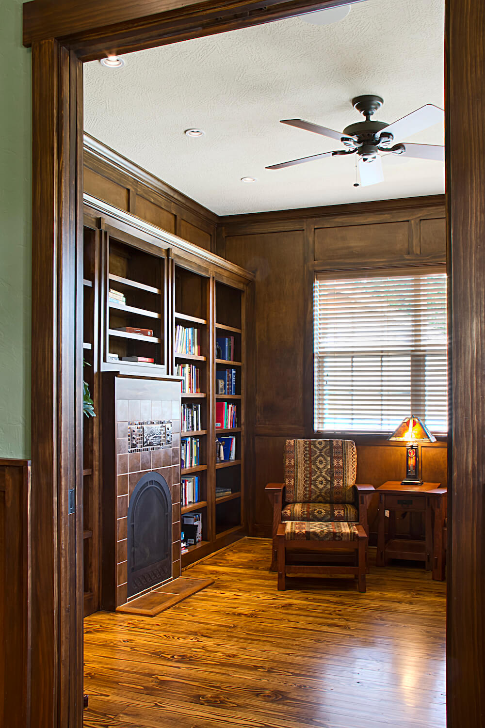 This home in The Heights shows off classic Craftsman design. We built it with brick bases, wood trim, and tapered columns that add strong curb appeal. Inside, the chef’s kitchen has a commercial-grade stove and built-in appliances, and cozy tile fireplaces bring extra charm. The primary bath includes a soaking tub and a frameless glass shower. We even added a hidden door that leads to a private study for a fun touch.