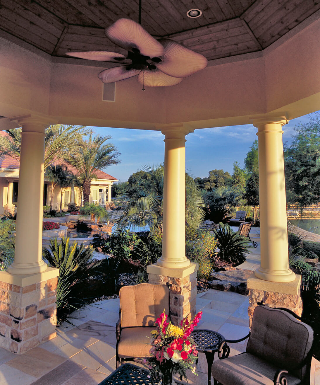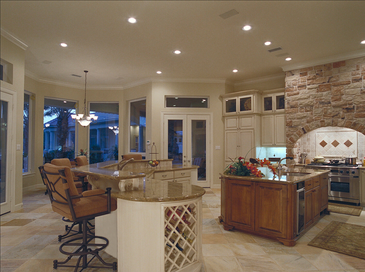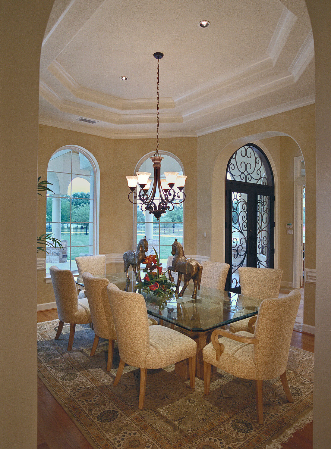 We brought a Mediterranean feel to this home in Tomball with arched windows, a clay tile roof, and smooth stucco. The backyard includes a resort-style pool, a relaxing spa, and a covered patio with a stone fireplace. Inside, the kitchen has a large island and a natural stone backsplash. The primary bath and dining room both include custom luxury details that make the space feel elegant and personal.