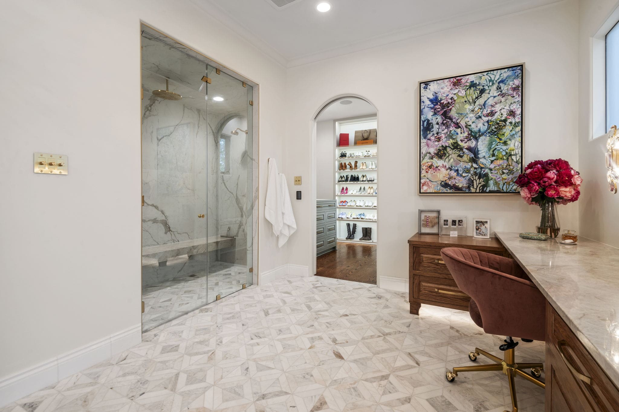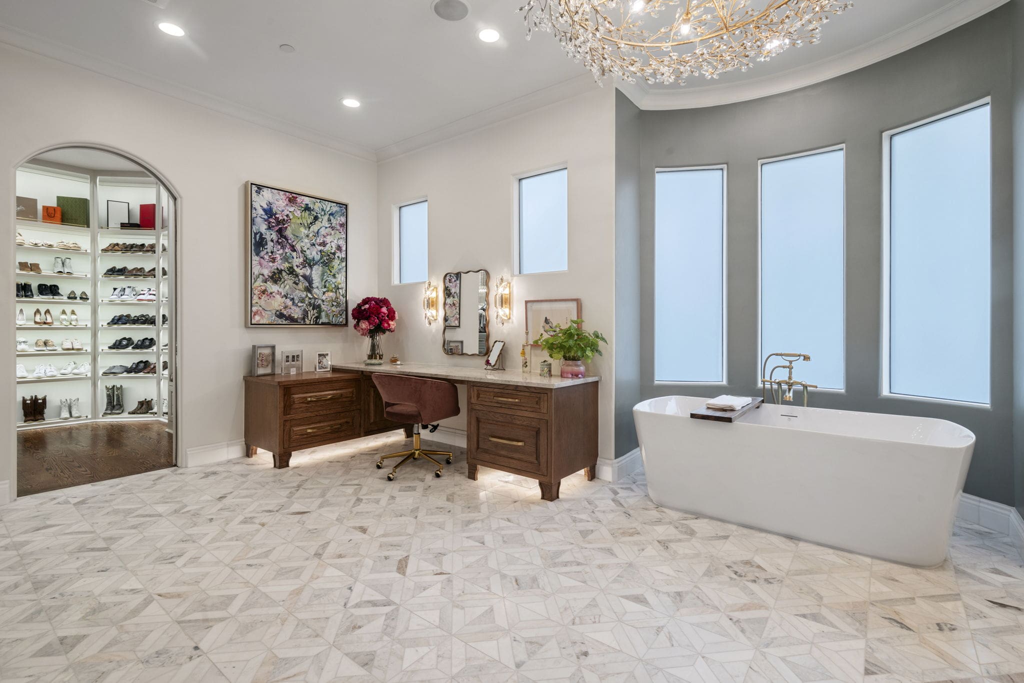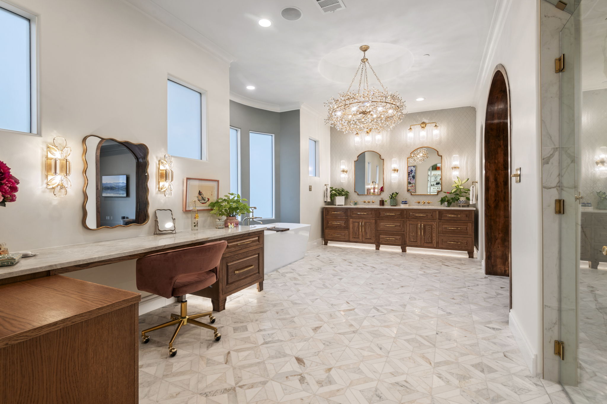 - Custom Vanities: Separate his-and-hers setups with granite counters, a makeup area, and lots of storage