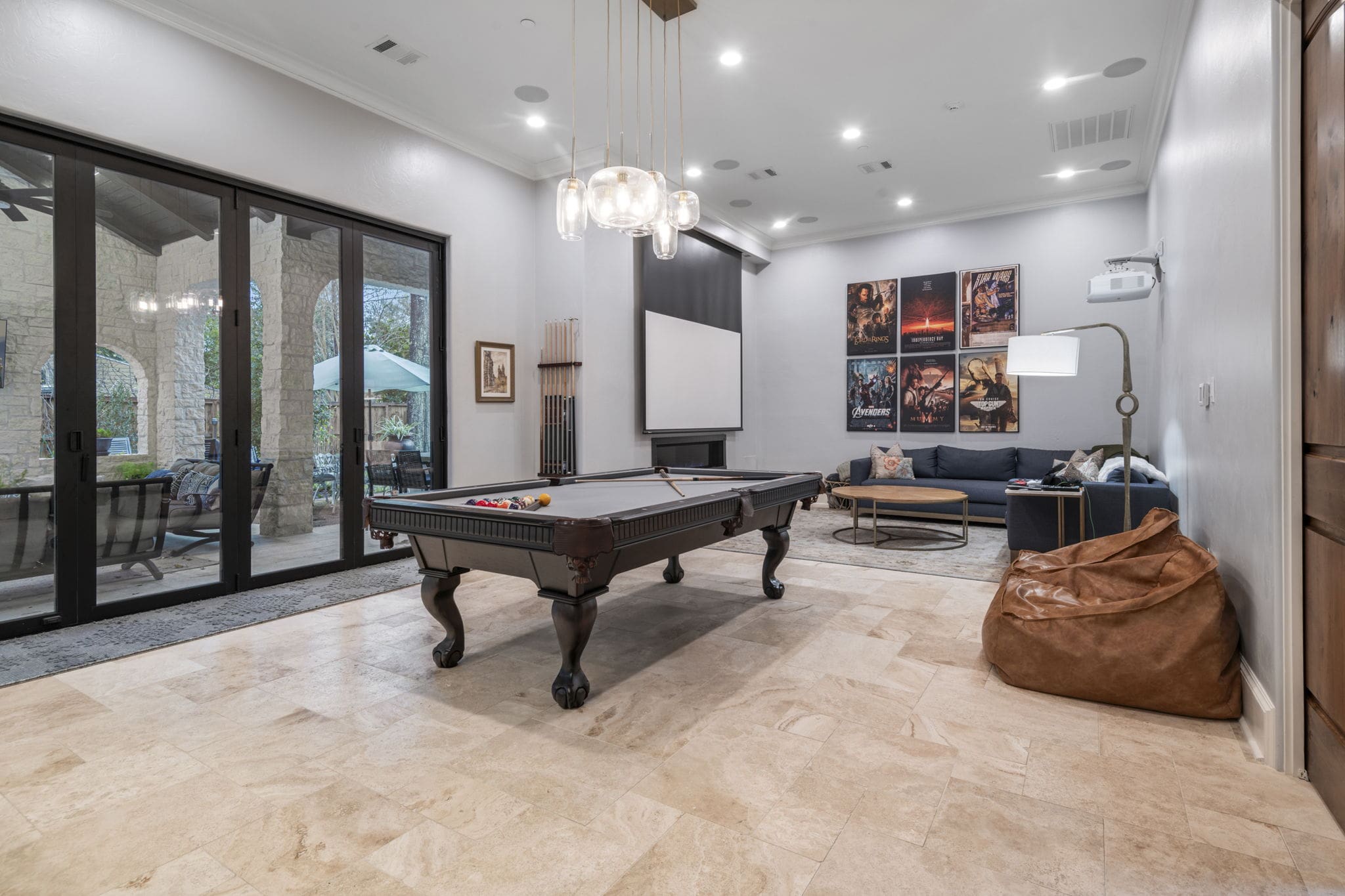 For this Hunters Creek project, we worked on several updates and additions. The master suite got sliding alder wood doors, a spa-style shower with heated floors, and separate vanities. We also added a large game room with marble floors and a custom bar. Outside, the backyard includes a new pool with water cannons, a swim jet system, and bright LED lights that make it feel like a high-end resort.